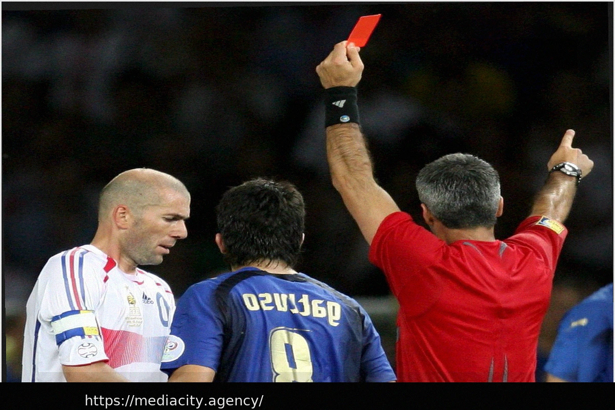 Помимо триумфа Италии, финал Чемпионата мира 2006 года, пожалуй, больше всего запомнился именно ударом Зидана в Матерацци, за который француз получил прямую красную карточку в своем последнем профессиональном матче.