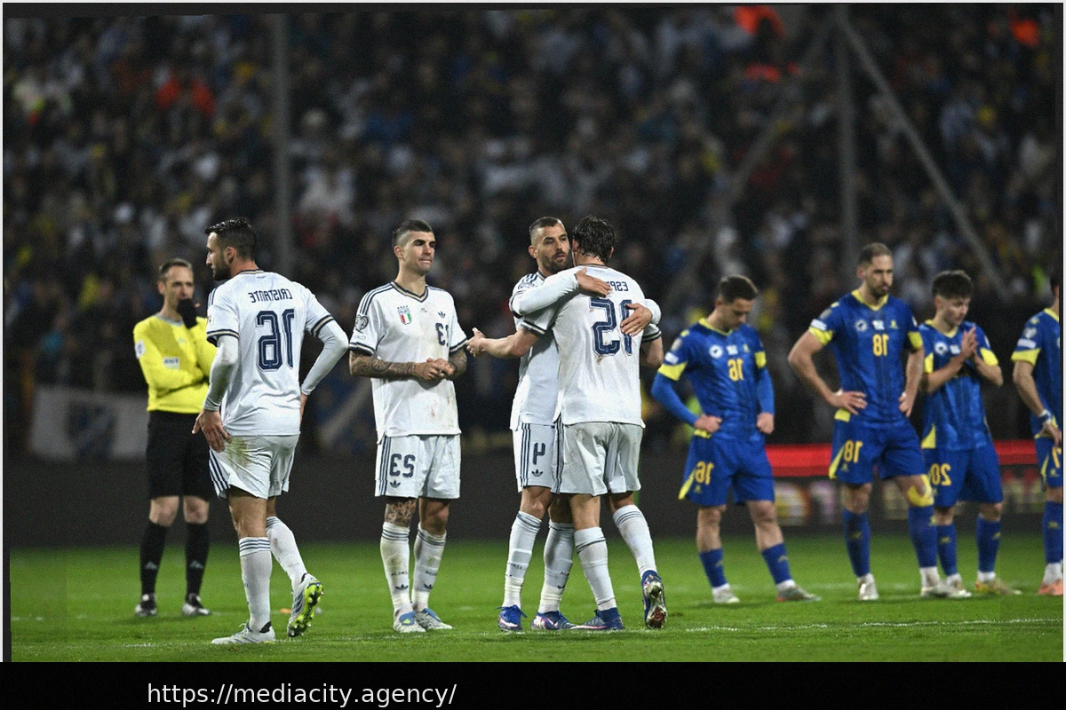 Playing with ten men, Italy managed to maintain their lead until the 79th minute. They pushed the game into a penalty shoot-out, but misses from Pio Esposito and Bryan Cristante, coupled with Bosnia converting all four of their initial kicks, led to Italy’s elimination at the World Cup play-off stage for the third consecutive cycle.